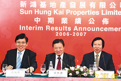 ■新鴻基地產表示,公司擬未來3年,加大內地投資資產比重至30%。圖為(左起)新鴻基地產副主席兼董事總經理郭炳聯、主席兼行政總裁郭炳湘及副主席兼董事總經理郭炳江。資料圖片