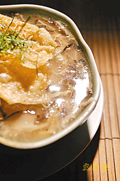 ■蛇羹另一要訣──無辣薑絲。薑絲可加強蛇肉驅寒作用及增強口感,但辣味會破壞蛇羹的鮮味,所以要進行繁複的啤水程序,去除辣味。蛇羹(每碗$65)