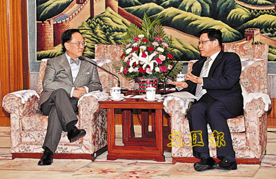 ■曾蔭權與國家發改委常務副主任陳德銘見面,共商發展大型跨境基建項目。本報記者徐海煒 攝