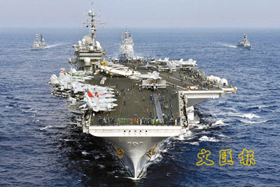 ■中國外交部發言人昨日宣布,中方出於人道主義考慮,允許小鷹號航母編隊在感恩節期間來港休整,惟小鷹號負氣拒絕,駛返日本。 彭博圖片