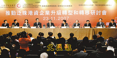 ■推動泛珠港資企業升級轉型和轉移研討會(會展),圖為大會主席台。本報記者李志樑 攝