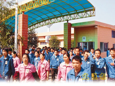 ■新的勞動法保護了更多工人的權益。圖為廣州一家企業的工人下班。