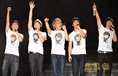 韓國人氣男子組合東方神起,前日在馬來西亞舉行第二次亞洲巡迴演唱會。在演唱會上,當然少不得勁歌熱舞及大唱情歌,未知是否受到大馬歌迷的熱情感染,當日穿著印有自己卡通肖像T-Shirt的五位隊員都表現興奮,不時舉高雙手向台下觀眾揮手,感謝大家的支持。五人如此親民,難怪他們深受亞洲各地區的歌迷歡迎哩!■文:龜子 圖:美聯社