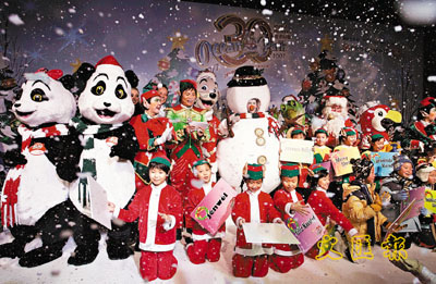 【本報訊】(記者 郝君兒)香港冬天從不下雪,不過,今年聖誕節市民可在海洋公園與大熊貓一起摸摸真雪,感受非一般的聖誕。海洋公園主席盛智文昨日化身大雪人,介紹公園的聖誕活動,他透露,除去年大受歡迎的冰上百老匯演出今年載譽回歸外,園內亦設滿布約40個人手雕琢而成的晶瑩聖誕冰雕的冰雪王國,預期今年聖誕節入場人數可打破去年55萬人次的紀錄。
