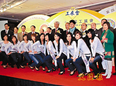 ■一年一度的工展會將於下月8日開始,圖中左七為廠商會會長洪克協,前排則是工展小姐。