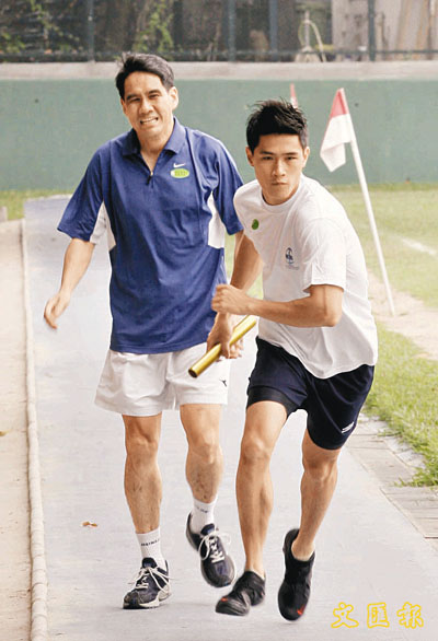 ■早前鄧竟成(左)和兒子鄧智兆一同參加接力跑。資料圖片