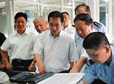 ■因為轟動全國的社保案,上海成為紀檢大力監察地區。圖為前上海寶山區區長秦裕(中)。 資料圖片