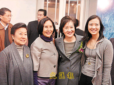 ■此次青意的滬港畫展由金董建平女士(右二)牽線,眾多名流好友為畫展捧場。 本報記者何靈芝 攝