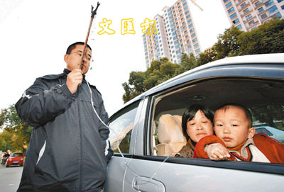 天氣急轉冷,大量小朋友因此生病,醫院爆滿。圖為南京一對父母在醫院外親自為孩子輸藥。