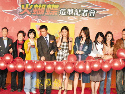 【本報訊】(記者 黃佩麗)昨日亞洲電視假大埔廠房為即將開拍的《火蝴蝶》舉行造型記者會,劇中演員齊集,包括李彩華、唐文龍、董敏莉、陳彥行、劉綽琪、梁俊一、陳少霞、詹秉熙、黃嘉威、李龍基、周子濠、林偉、戚黛黛、李鳳聲、江毅、姜皓文、董南菲等,一眾演員齊齊刺破氣球,預祝拍攝順利,大收旺場。《火蝴蝶》故事環繞現代女性如何力爭上游、躋身上流社會,最後成為上市集團主席。全劇會以豪門大戶間的明爭暗鬥為骨幹,配以亮麗豪華的包裝,刻劃出一段段恩怨情仇。