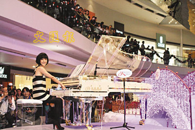 【本報訊】久未在港露面的周迅前晚到又一城出席聖誕亮燈儀式,特別即場示範鋼琴技藝,大騷音樂才華。周迅今年聖誕將在北京拍戲,因而未能與男友李大齊共度佳節,她希望可在工作中過一個白色浪漫聖誕,因為早上起床後見到屋外一片白茫茫感覺浪漫。周迅前晚以黑白間條背心裙亮相,並表演鋼琴彈奏兩節樂曲,盡顯音樂才華,現場除了有聖誕老人增加聖誕氣氛,又安排女模以周迅在《如果愛》的服飾打扮表演舞蹈,場面熱鬧。周迅說:「我本身不懂彈琴,為了這活動特別向朋友請教,練習了一個晚上,演奏時睇樂譜睇到眼花!」
