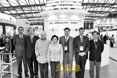 ■鄭汝樺(中)在上海為中國國際海事會展中的香港館主持開幕禮後,與出席的香港航運發展局成員及港口發展局成員合照。