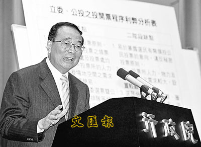 ■台「行政院長」張俊雄28日表示,藍營堅持兩階段投票方式是無效的。中央社