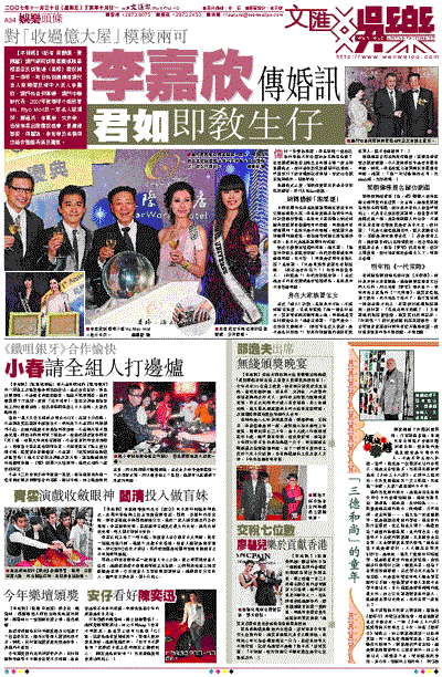 日前有周刊指李嘉欣親認男朋友許晉亨的父親送過億大屋,李嘉欣更趕著為明年的生仔計劃做好準備,嘉欣昨日在活動上對於報道內容就採取模稜兩可的回應。問到她可有看過周刊?嘉欣只是不停點頭,但就說只是知道周刊這樣寫,因為這些報道已經寫過好多次,並不代表她承認周刊的報道。