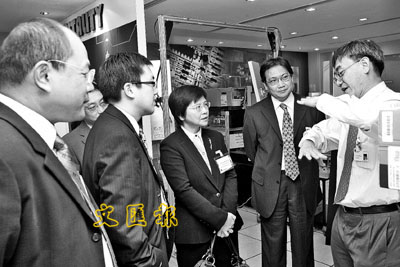 香港特別行政區商務及經濟發展局常任秘書長(通訊及科技)劉吳惠蘭訪問新加坡,參與連串與資訊及通訊科技業相關的活動。劉吳惠蘭(中)昨日聯同副政府資訊科技總監(營運)麥鴻崧(右二)參觀新加坡國家無線射頻技術中心,並獲新加坡製造技術研究院林四雄院長(右一)介紹中心的運作。