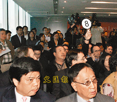 ■馬清偉(持8號牌)高價奪回上環祖業地盤。 本報記者張偉民 攝