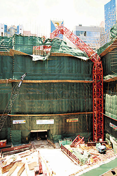 ■興利中心拆卸地盤今年發生天秤倒塌意外,釀成2死5傷慘劇。圖為有關人員當日在場調查。資料圖片