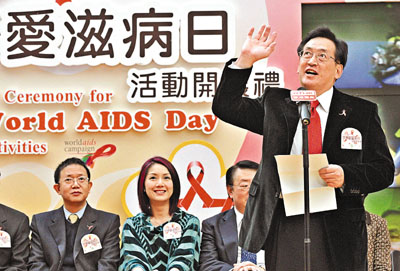 周一嶽昨日在「2007世界愛滋病日活動開展禮」致詞。本報記者李志樑 攝