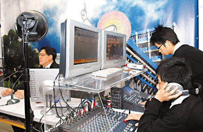 ■馬時亨透過學校的「校園電視台」,以直播形式跟全校同學講話。