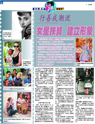 當然,真正有心者大有人在,尤其是年青一輩,還身體力行,不只是拍30秒廣告片或者是拿一襲晚裝出來拍賣便算,提高門檻的是安祖蓮娜祖莉(Angelina Jolie)。