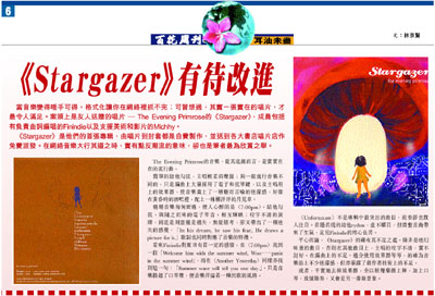 《Stargazer》是他們的首張專輯,由唱片到封套都是自費製作,並送到各大書店唱片店作免費派發。在網絡音樂大行其道之時,實有點反潮流的意味,卻也是筆者最為欣賞之舉。