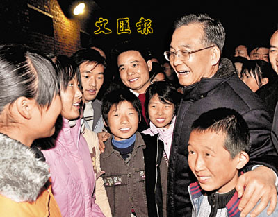 下午,溫家寶來到由胡少靈、張萍夫婦和4個孩子組成的家庭,詳細詢問這個家庭的情況。當得知這些家庭的「媽媽」每月只拿500元補貼費,有的甚至不要補貼時,溫家寶深情地對孩子們說:「不在於錢,而在於感情。你們的『爸爸』、『媽媽』是有愛心的人、善良的人,你們要刻苦學習,長大別忘記他們,要孝敬他們。你們也要像親兄弟一樣互相幫助。」他稱讚「這種家庭是一種好形式」。