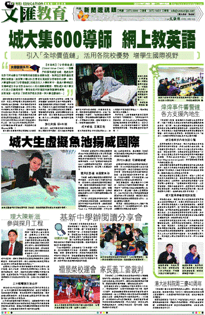 【本報訊】「全球價值鏈」(Global Value Chain),一個專門的管理經營名詞,透過活用世界不同地區在不同範疇的優勢配合相應流程,為商品及服務創造更高附加價值。面對著大學3改4及畢業生需面對全球競爭的挑戰,城市大學創新地將「全球價值鏈」的概念引入大學教育中,透過大學網絡及互聯網建立來自世界各地600人的英語導師團隊,幫助提升城大學生英文能力及國際視野。署理校長何炘基對有關新穎構思感到非常滿意。他笑言:「我想我們是世界第一間大學這樣做的。」