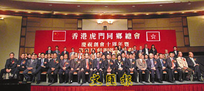 【本報訊】(記者 鄭群)香港虎門同鄉總會10周年會慶暨第4屆會董就職典禮,日前假九龍灣國際展貿中心隆重舉行,中聯辦副主任黎桂康、特邀顧問陳鳳英,東莞市政協主席劉樹基,香港東莞同鄉總會主席王國強,東莞市副市長梁國英、政協副主席袁德和,東莞虎門鎮書記鍾淦泉、鎮長任洪傑應邀蒞臨主禮。當晚筵開108席,逾千賓朋同申慶賀,場面盛大,喜氣洋洋!