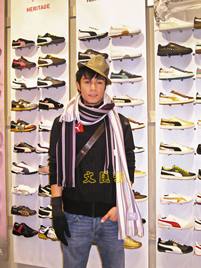【本報訊】(記者 梁靜儀)周柏豪與新晉模特兒Angela Baby昨日齊出席puma新店活動,大會並邀得時裝設計師陳刀為二人設計特別的聖誕look。剛由上海返港的周柏豪,表示此行是出席一個慈善攝影展,同場並有張曼玉(Maggie)及其德國建築師男友Ole、內地名模杜娟、「超女」李宇春、Amanda S.及董敏莉等。周柏豪更有幸與小時偶像Maggie合照,並大讚Maggie與新男友幾合襯。他指當晚Maggie很忙,所以未有機會與對方傾偈,但能夠合照他已好開心。他又稱還想見韋史密夫,稍後對方來港宣傳,有時間的話他也不排除會追星。昨日他出席運動品牌活動並獲贊助,問到他會不會送用品給師姐薛凱琪?周柏豪想送手錶。問到Fiona經常遲到嗎?他笑說:「不是,給她看看時間。」
