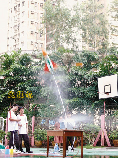 ■譚李麗芬中學經常鼓勵學生進行科學活動及比賽。圖為該校的「水火箭」活動情況。 資料圖片