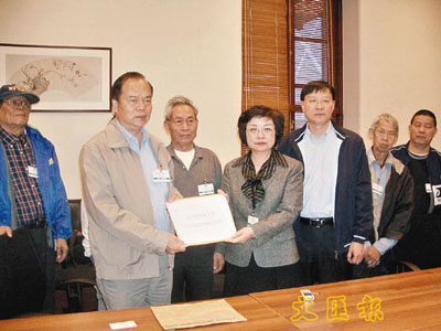 ■王國興(右三)昨聯同張志雄(左二)及雪糕車小販代表等約見勞月儀(右四)遞交請願信。