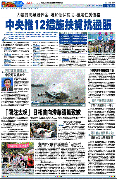 【綜合新華社5日電】國家發展和改革委員會透露,今明兩年,中國政府將採取12項措施安排困難群眾生活,緩解廣大低收入群體和離退休人員因物價上漲帶來的生活壓力。同時,發改委有關負責人還介紹,為發展農業生產,保障農民利益,中國明年將採取四大措施進一步加大支農力度。