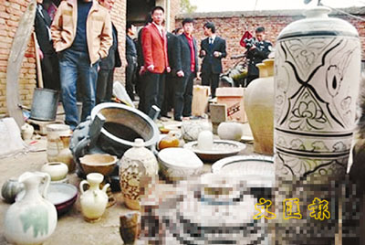 河南登封市一農婦拜師學會了識別古董及倒賣文物的訣竅,自此她與家人放棄耕地,開始盜挖古董。月前落網後,曝光家中擺滿284件古代各式瓷製工藝品(見圖),令到場的專家瞠目結舌。「從大量碎瓷片形狀看,年代應為唐代、五代、宋代和金代,是研究中國陶瓷史及唐代至金代製瓷工藝的重要資料,極具歷史價值和科學價值。」 ■來源:東方今報