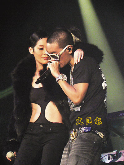 【本報訊】(記者 李思穎)麥浚龍前晚假九龍灣展貿舉行音樂會,邀請了草蜢和關淑怡擔任嘉賓,前往欣賞的圈中人不少,全晚最有睇頭便是關淑怡出場,她穿上兩側開窿的性感泳衣外披皮草,當搖擺身體跳舞時相當誘人,可是麥浚龍似乎不敢消受這份艷福,當關淑怡行近其身邊時,但見麥浚龍全身生硬,十分害羞,反而一個人在台上表演便放鬆得多,「安哥」時更脫去上衣露出兩點。