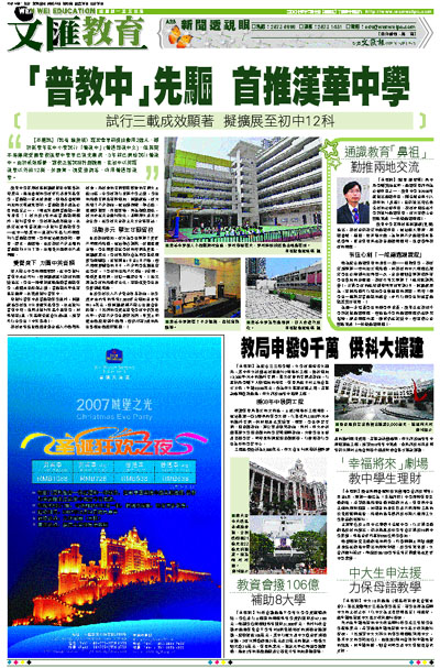 【本報訊】(記者 羅賀琪)語常會早前提出動用2億元,擬於新學年在中小學試行「普教中」(普通話教中文),但其實本港傳統愛國學校漢華中學早已領先潮流,3年前已開始試行普教中。由於成效顯著,該校正嘗試將計劃擴展,在初中以英語教學以外的12科,如體育、視覺藝術等,均用普通話教學。