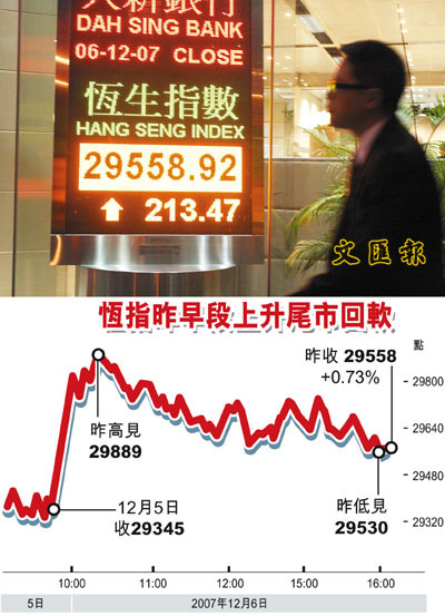 有基金經理表示,周三內地表明貨幣政策要改為「從緊」,昨日還以為港股會借勢調整,誰知道恆指大升200點,令資金跟進掃貨,但他指,資金已從地產股換馬至銀行股,持有地產股的散戶應趁高減持。他又謂,如恆指成功突破30,000點,今年內的頂位會是30,500點,不過,成交低企仍是港股後市一大後患。窩輪成交額為370億元,佔大市成交29.5%。