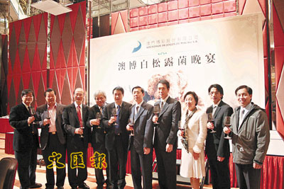 早前於澳門新葡京酒店舉行之「世紀白松露菌」國際拍賣會,全球最大之白松露菌最後由澳門博彩股份有限公司行政總裁何鴻燊以33萬美元投得。為了讓各方的賓客一嘗「世紀白松露菌」的神奇美味,澳博在新葡京宴會廳筵開16席,將重金投得的白松露菌製成美味佳餚,款待來自各地的嘉賓好友,本報社長張國良伉儷、副社長韓力也成為座上客。