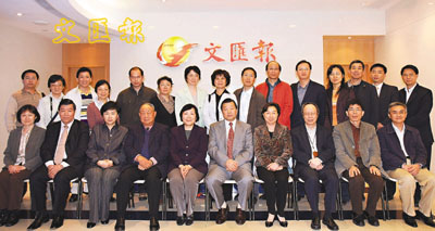 由中華全國新聞工作者協會書記處書記趙晨襾率領的第十屆海峽兩岸及港澳新聞研討會赴台訪問團,昨抵港並蒞臨本報, 受到本報社長張國良(前右五)等的熱情接待,香港報業公會會長李祖澤(前左四)一同參加了會面,新聞同行一起暢談從業經驗。 本報記者樊宇燕 攝