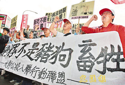 ■美國副助理國務卿柯慶生認為,民進黨推動「入聯公投」,不符合台灣人民和美國利益。圖為台灣「反公投入聯行動聯盟」月前在民進黨總部外舉行抗議活動。資料圖片