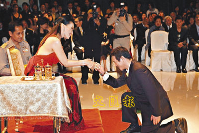 ■李連杰日前赴泰國宣傳《投名狀》,跟泰國公主見面時,立即下跪行禮。