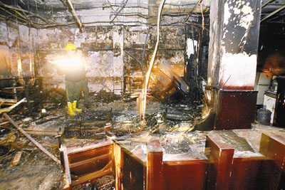 ■被燒毀的咖啡廳內景。本報東莞傳真