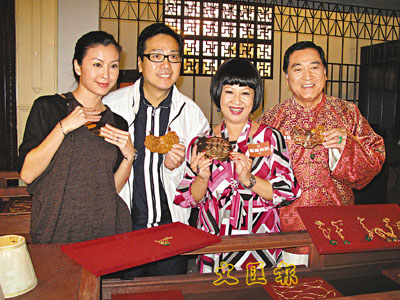 【本報訊】(記者 李慶全)無線新劇《銀樓金粉》昨日開鏡,演員薛家燕、伍詠薇、伍衛國、秦沛及楊思琦等齊出席拜神儀式。家燕姐演「銀號」老闆秦沛的大太太,與另外三位姨太明爭暗鬥,算是個半奸的角色,她笑指這令她明白人生有些事是不由自主,有時為保護自己會走上歪路,而現實中的她一樣充滿逆境,卻從沒走過歪路,像她不似角色中對丈夫死心塌地,不過她最想能似劇中般擁有大家族家業,現很想向一億元這個數字邁進。記者指她應早已賺到這數目,家燕姐即表現出尷尬的笑容說:「嘻嘻,邁向中!」