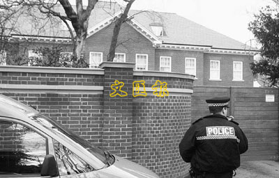 ■謝拉特位於利物浦的豪宅遇竊後,警員在門外駐守。法新社