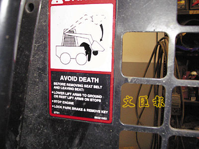 美國有個一年一度的「騎呢警告標籤比賽」,選出周遭可以找到的古怪警告字句。今年榮膺騎呢之冠的是一架拖拉機上「危險:避免死亡」(見圖)的警告。居亞的是一款衣服上的一句「切勿燙穿在身上的恤衫」,難免有點侮辱人的智慧。