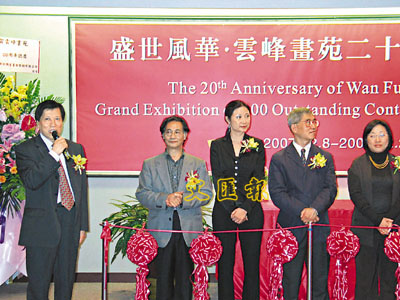 ■雲峰畫苑20周年藝術大展創辦者兼主持人郭浩滿回顧畫苑發展歷程。