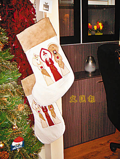 ■以三皇朝聖為主題的聖誕襪,既可作裝飾,又可包裝禮物,一物多用。售價:$48(a)