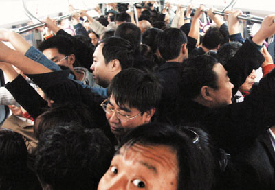 ■北京列世界第12位人口最稠密的城市。圖為北京市民乘坐地鐵五號線。 資料圖片