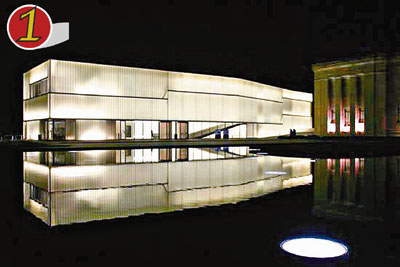 納阿氏藝術館建築風格為新式古典派。這次獲選為《時代》周刊2007年度十大最佳建築首位的,是館內新建的布洛克大樓。館方於1993年開始構思擴建,目標是要增加藝術館面積55%。擴建計劃於1999年落實,建築師霍爾把新翼設計成樓底高度不一,並且令大樓發光,《時代》周刊形容布洛克新翼是古典派建築的宏偉新猷。