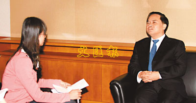 ■廈門市長劉賜貴(右)接受本報記者採訪。本報記者米南 攝