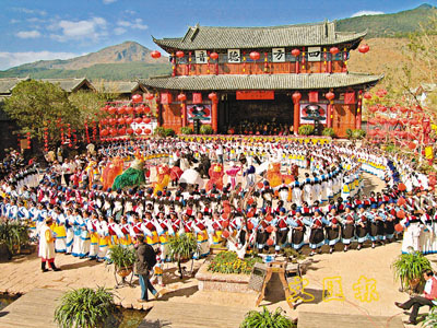 ■雲南小鎮建設保護了獨特的民族文化,帶動了當地群眾參與旅遊產業發展的積極性,豐富了雲南文化旅遊產品。圖為麗江束河古鎮春節文化活動吸引眾多遊客參與。 攝影:和向紅